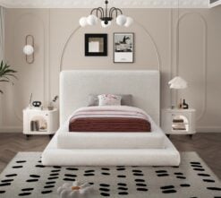 Bring a brand new look to your personal bedroom sanctuary with this Dane teddy fabric bed. The soft faux shearling teddy fabric feels gentle and soothing to your back as you read or watch TV in bed. Neutral cream makes this bed an easy-to-coordinate option with other furnishings, and a stacked frame design ensures a pleasantly modern aesthetic from every angle. Construction with premium engineered wood material ensures lasting quality and performance.