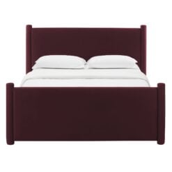 Elevate a small guest bedroom or teen’s room with the modern elegance of the Rael Full Platform Bed Frame. Upholstered in soft, stain-resistant performance velvet, this full upholstered bed features a padded headboard and footboard for a plush, inviting feel. The velvet bed is framed by rounded, upholstered vertical posts that accentuate the headboard and footboard, adding a touch of unique style and dimension. Creating a cohesive, luxurious look, the modern bed frame with pillars is both stylish and functional. The Rael full platform bed includes a sturdy wood slat support system, providing a durable, well-ventilated foundation for a variety of mattress types, eliminating the need for a box spring. Whether used in a guest room or as a full size bed frame for teens, the Rael soft bed frame delivers a sleek and sophisticated upgrade to your decor. Assembly required. Weight Capacity: 800 lbs.
