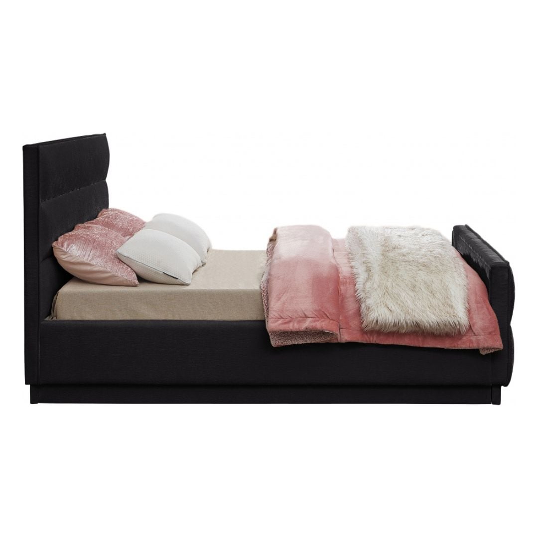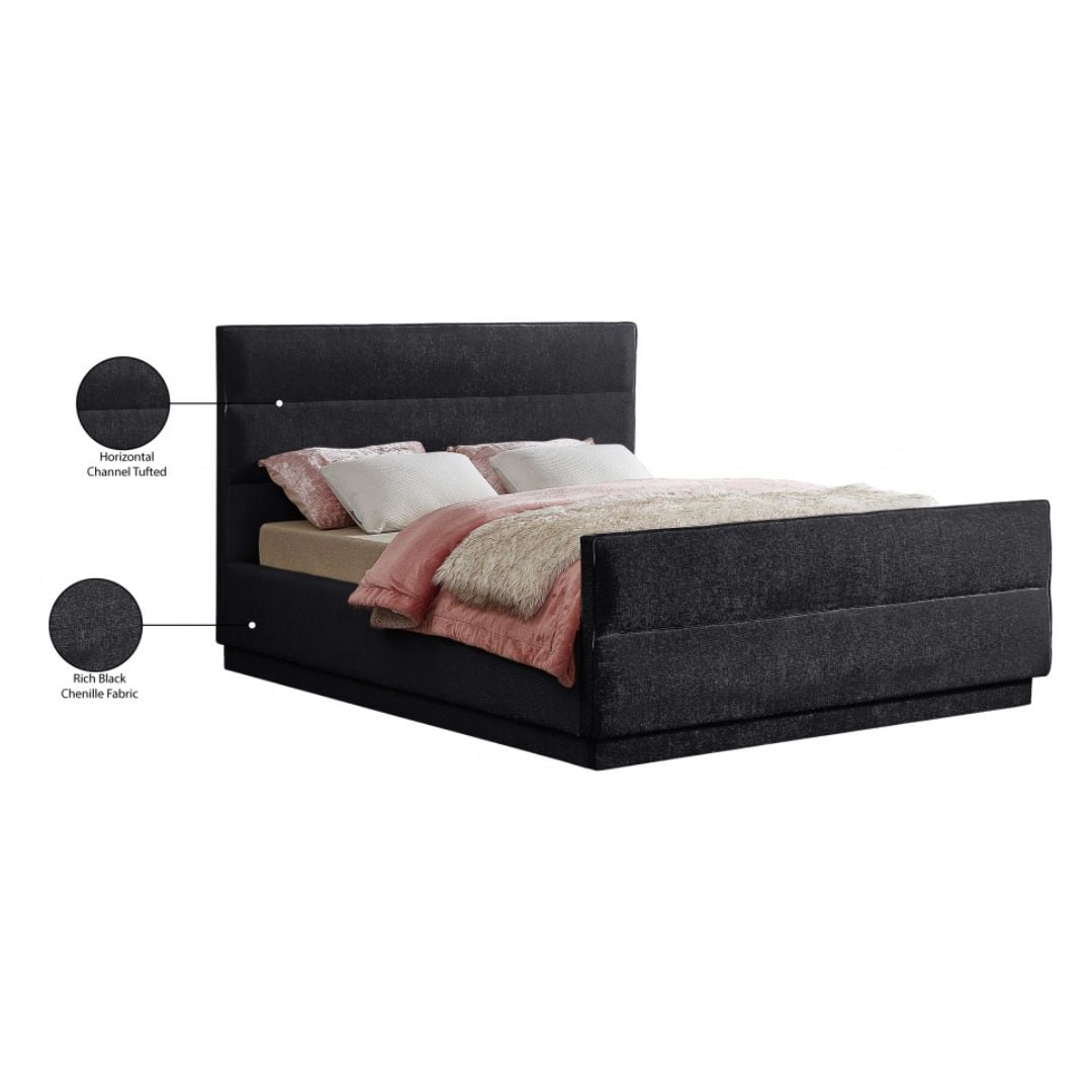 Embrace the essence of cozy sophistication with the Paxton Chenille Fabric Bed, a haven designed to elevate your sleep experience and enhance your bedroom’s aesthetics. The bed is adorned in a luxurious rich black chenille fabric, its soft texture inviting you to sink into its warmth. The subtle sheen of the chenille adds a touch of elegance, creating a timeless look that complements various decors. The headboard features a classic horizontal channel tufted design, adding visual interest and dimension to the bed. This sophisticated detail exudes a touch of vintage charm, making the Paxton a perfect fit for both traditional and contemporary spaces.