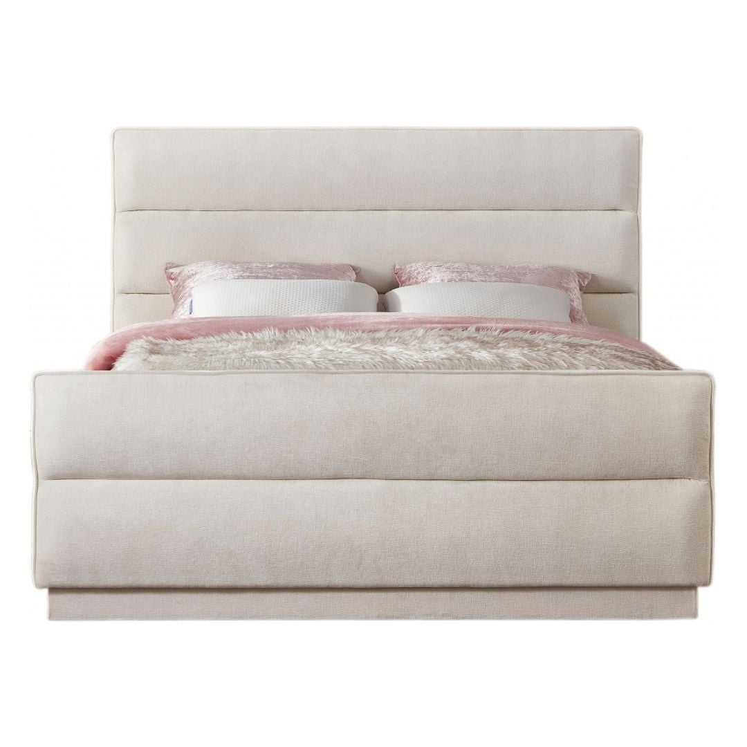 Embrace the essence of cozy sophistication with the Paxton Chenille Fabric Bed, a haven designed to elevate your sleep experience and enhance your bedroom’s aesthetics. The bed is adorned in a luxurious rich cream chenille fabric, its soft texture inviting you to sink into its warmth. The subtle sheen of the chenille adds a touch of elegance, creating a timeless look that complements various decors. The headboard features a classic horizontal channel tufted design, adding visual interest and dimension to the bed. This sophisticated detail exudes a touch of vintage charm, making the Paxton a perfect fit for both traditional and contemporary spaces.