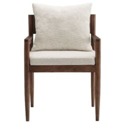 Blending modern elegance with timeless craftsmanship, the Remington Wood Armchair offers a refined seating experience. This upholstered accent armchair features a solid elm wood frame with a rich finish, showcasing clean lines and an open-back design. The foam-padded seat and removable back pillow are wrapped in a slub weave fabric, adding texture and comfort to living rooms, dining spaces, or home offices. Tapered legs bring a Scandinavian touch, while non-marking foot glides protect floors. Whether used as a living room accent chair, dining armchair, or desk chair, Remington’s sophisticated design complements any contemporary setting. Arrives fully assembled. Weight Capacity: 300 lbs.