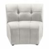 Upholstered in soft cream velvet, this Michelle chair is sumptuously glamorous. Designed for upscale living, this chair features rich gold nail head trim and gold iron legs that keep it grounded in contemporary beauty. Tufted material covers every inch of this unit, and button tufting ensures that the unit stays plump and comfortable and holds up well to continual use. Pair it with other items in the collection for a cohesive look.