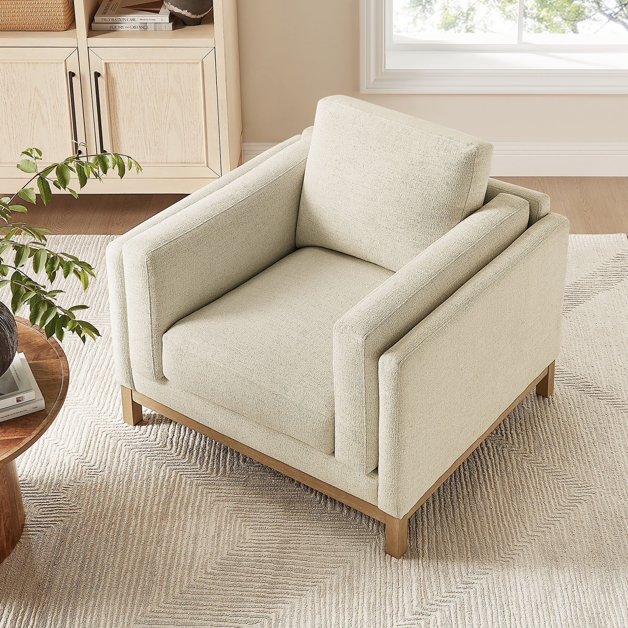 Refined lines and enduring design shape the Roscoe Armchair, a tailored take on American-traditional style. Upholstered in soft and subtle Mélange Chenille fabric, this accent chair with arms features a deep, wide seat with plush back and seat cushions, made of high resiliency foam, further supported by spring pocket coils and sinuous springs for lasting comfort. The low, streamlined profile sits atop a kiln-dried weathered wood frame with integrated legs and non-marking foot caps for added stability and floor protection. A versatile comfortable accent chair for modern or classic interiors, Roscoe is great as a lounge chair for bedroom, corner reading chair, or living room accent chair. Weight Capacity: 800 lbs.