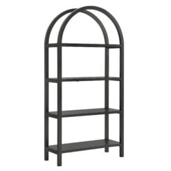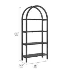 With its sculptural curves and modern take on classic arches, the Vexley Arched Bookshelf brings an artful edge to any space. Ideal for showcasing curated objects, favorite reads, or design-forward accents, this large 72 inch open shelf bookcase plays with negative space and architectural curves, bringing an airy, artful touch to blank walls or creative corners. Built from a pine wood frame and shelves, Vexley offers both strength and style. For added safety, it includes an anti-tip bracket on one of the middle shelves and non-marking glides to protect flooring. A true conversation starter, this arch bookshelf makes a bold statement without visual clutter, blending modern form with effortless display potential. Assembly required. Weight Capacity: 220lbs.