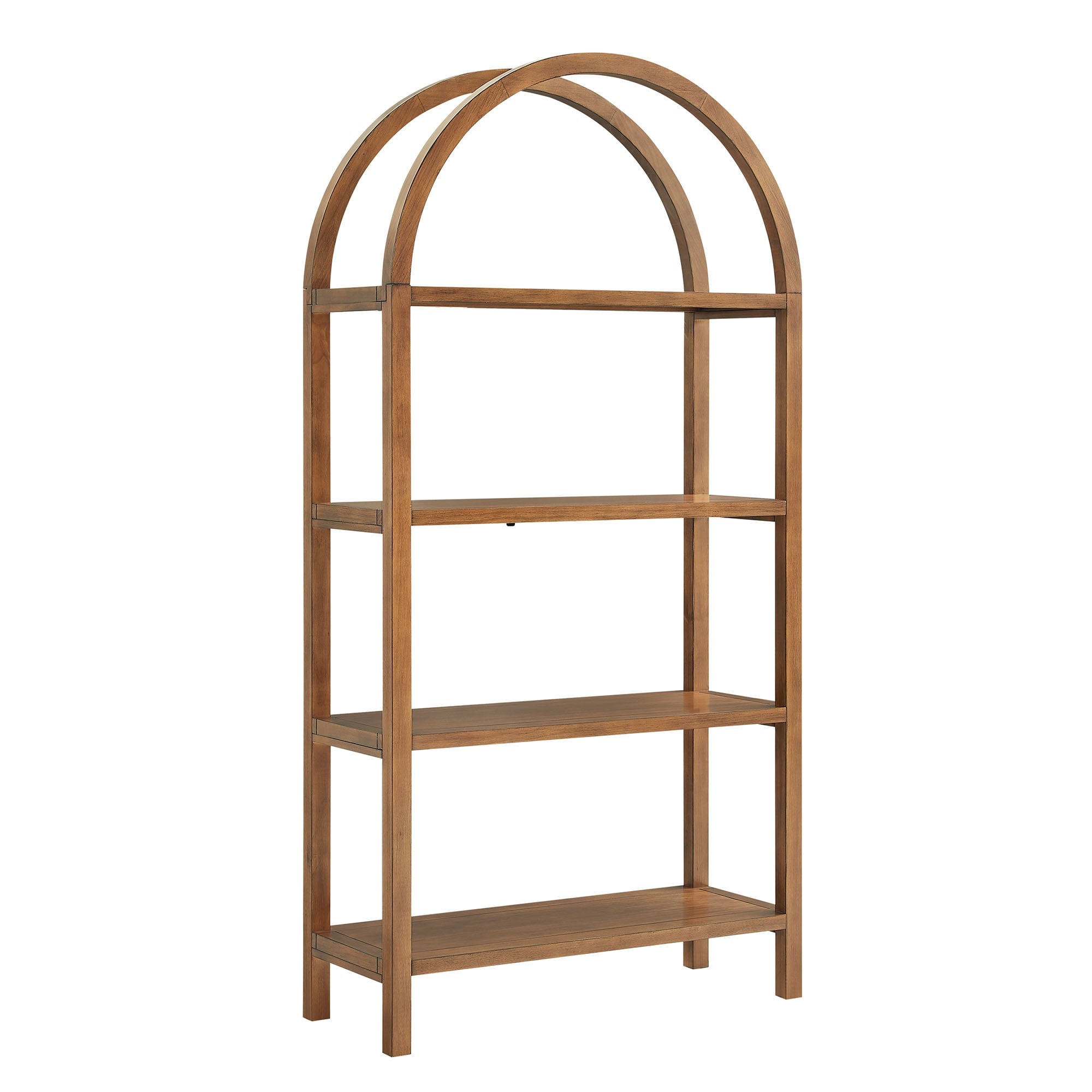 With its sculptural curves and modern take on classic arches, the Vexley Arched Bookshelf brings an artful edge to any space. Ideal for showcasing curated objects, favorite reads, or design-forward accents, this large 72 inch open shelf bookcase plays with negative space and architectural curves, bringing an airy, artful touch to blank walls or creative corners. Built from a pine wood frame and shelves, Vexley offers both strength and style. For added safety, it includes an anti-tip bracket on one of the middle shelves and non-marking glides to protect flooring. A true conversation starter, this arch bookshelf makes a bold statement without visual clutter, blending modern form with effortless display potential. Assembly required. Weight Capacity: 220lbs.