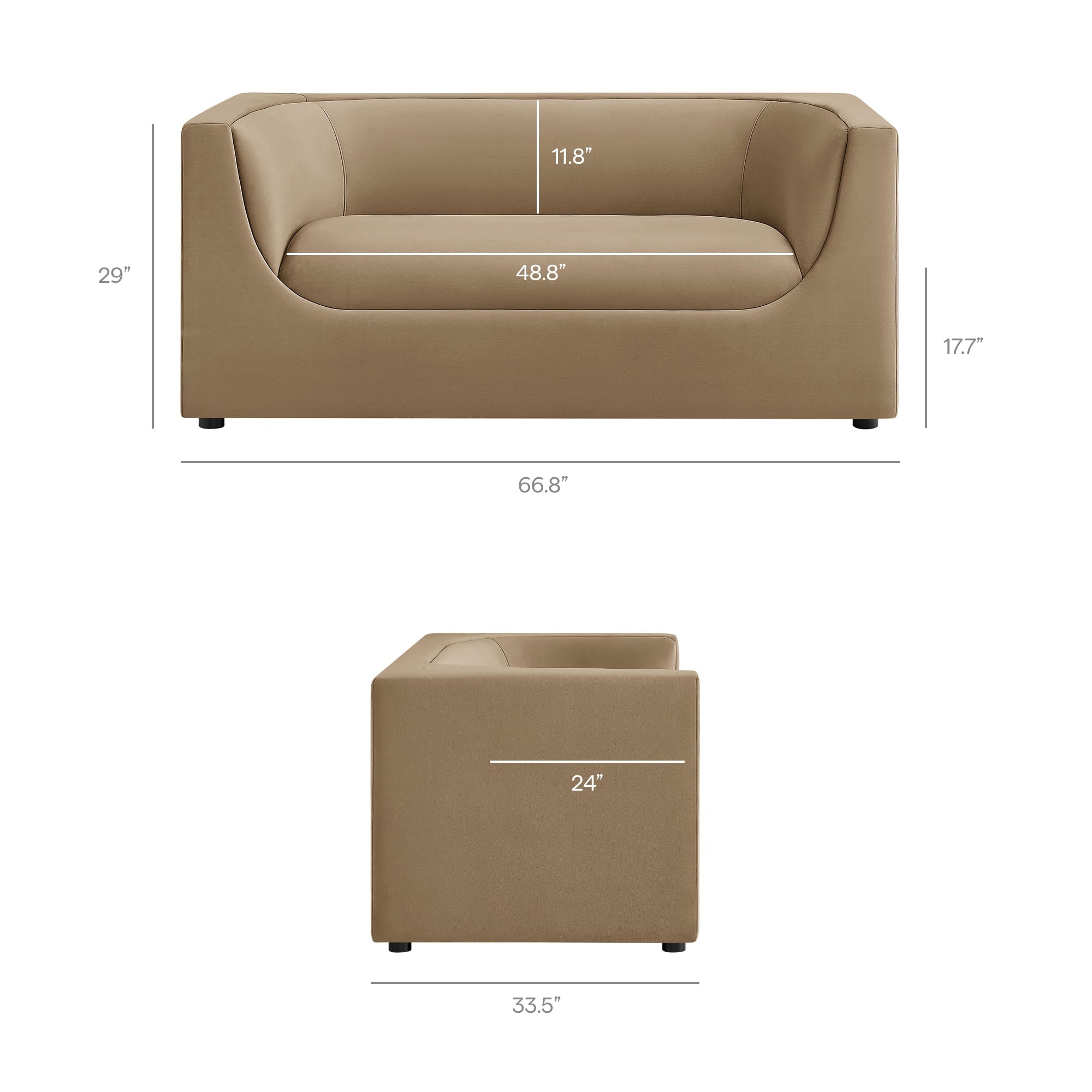 Bring a sculptural, lounge-forward look to your space with the Hilda Curved Back Loveseat. Designed as a Luxury Modern Velvet Loveseat, Hilda features a wrapped, continuous back that flows into gently curved arms, creating a refined silhouette that feels polished from every angle. Upholstered in soft-touch performance velvet loveseat fabric, this modern performance velvet loveseat with curved back delivers smooth, velvety texture and an elevated finish that works beautifully in contemporary and minimalist interiors. As a 67 inch loveseat, Hilda offers comfortable, relaxed seating for everyday living—an inviting 2-seat couch for living room use, apartments, and small-space layouts that still want statement style. With its low-profile presence and clean-lined form, this modern upholstered loveseat anchors living room seating without overwhelming the room. Easy assembly required. Weight Capacity: 502 lbs.