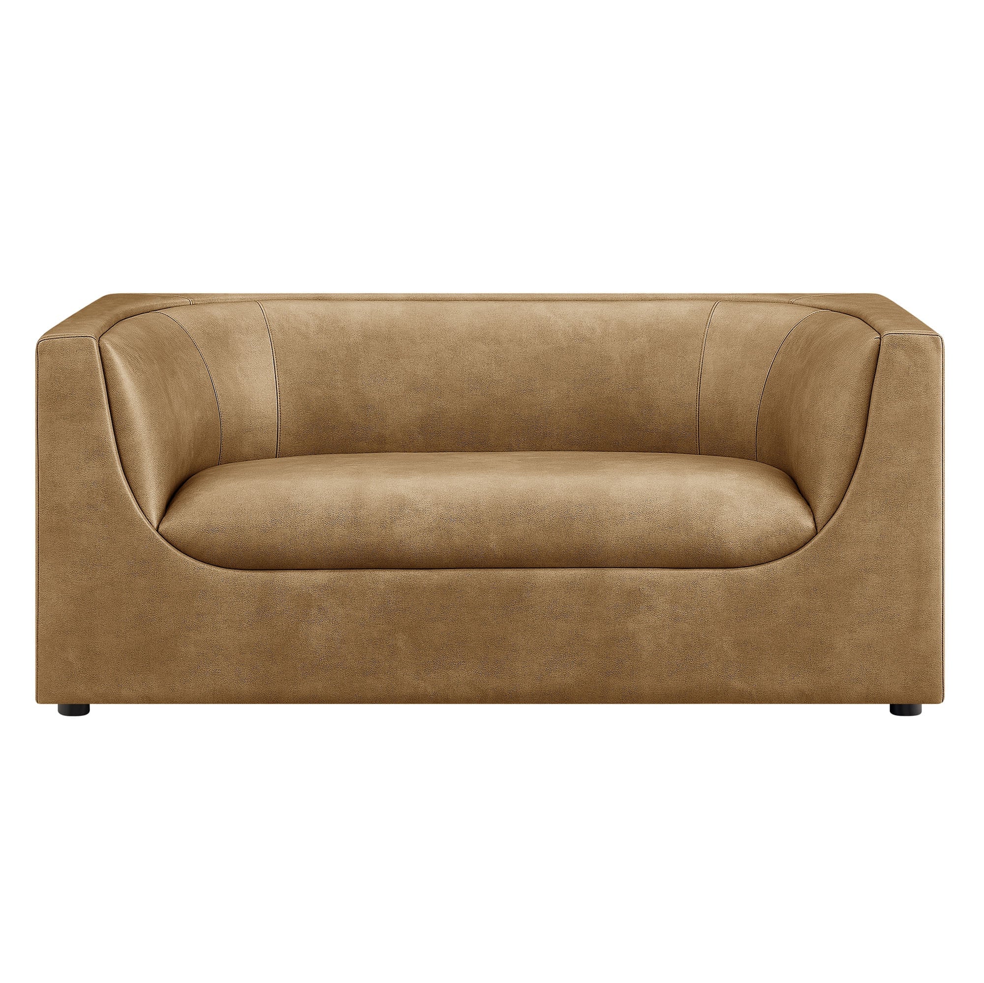 Bring a sculptural, lounge-forward look to your space with the Hilda Curved Back Loveseat. Designed as a luxury modern faux leather loveseat, Hilda features a wrapped, continuous back that flows into gently curved arms, creating a refined silhouette that feels polished from every angle. Upholstered in premium pebbled vegan leather, this modern loveseat delivers a smooth, leather-look finish and an elevated texture that works beautifully in contemporary and minimalist interiors. As a 67 inch loveseat, Hilda offers comfortable, relaxed seating for everyday living—an inviting 2-seat couch for living room use, apartments, and small-space layouts that still want statement style. With its low-profile presence and clean-lined form, this modern upholstered loveseat anchors living room seating without overwhelming the room. Easy assembly required. Weight Capacaity: 502 lbs.