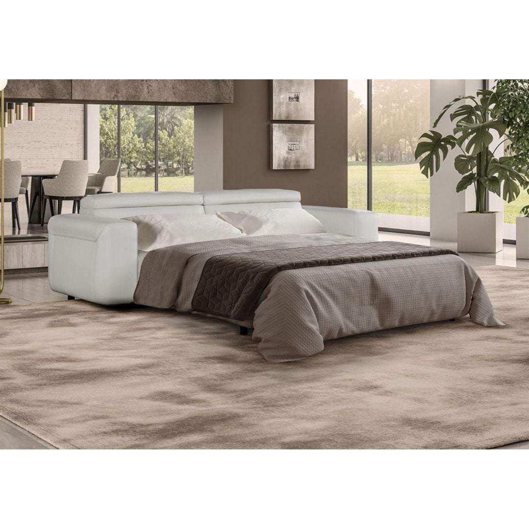 The Icon Sofa Bed is an Italian-made leather sofa. The extension of the sofa bed is made more efficient by a matching leather strap between the headrests. This aids the extension, making it feel effortless. The adjustable headrests add another layer of functionality to this luxurious design. Sure to fit into your contemporary or modern home.
