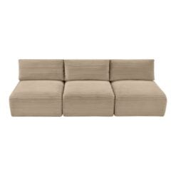 Indulge in luxurious and supreme comfort with the Shaggy taupe corduroy performance fabric upholstered modular sofa, featuring soft furry-textured corduroy fabric with bold 1-inch-wide wales. Designed for both style and durability, this performance fabric is water-repellent and stain-resistant, ensuring long-lasting beauty. The comfortable foam seating offers plush support, while its modular design allows for infinite configurations to suit your space with a secure latch underneath to add more pieces.