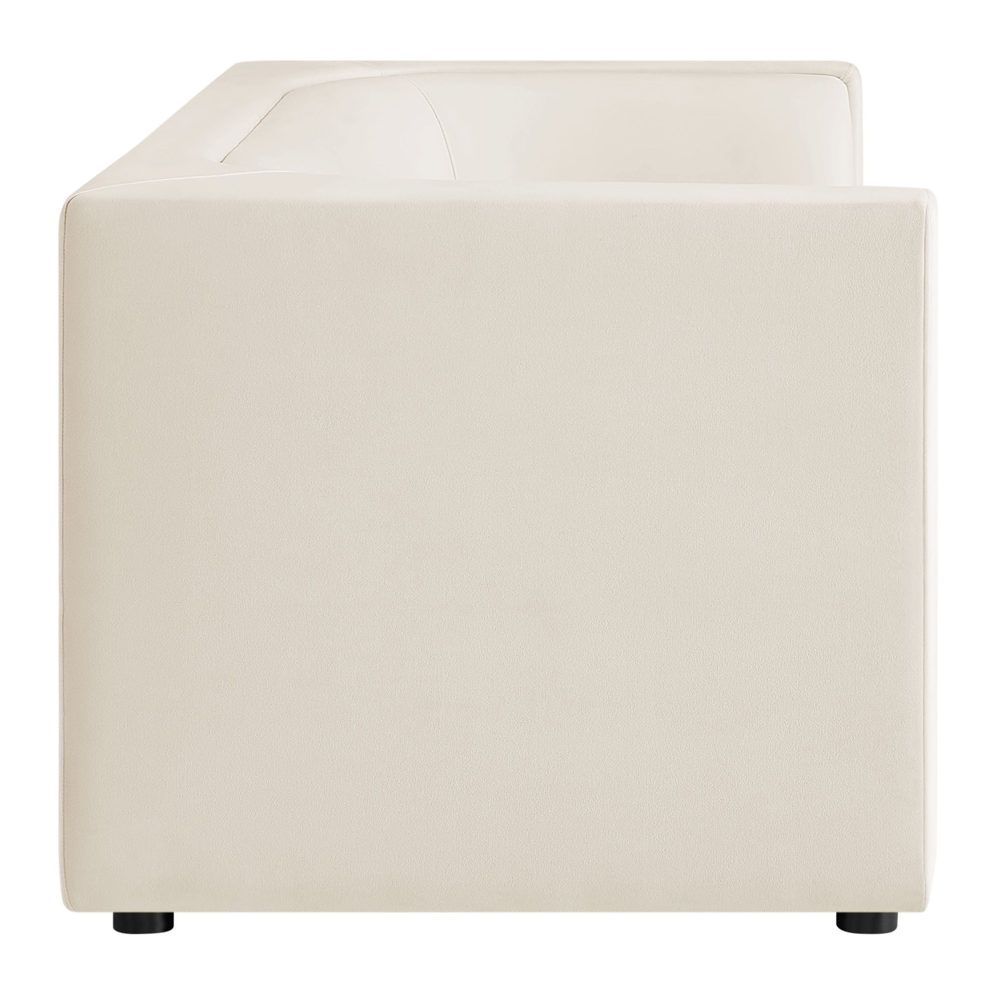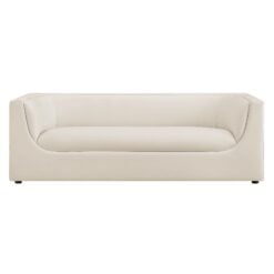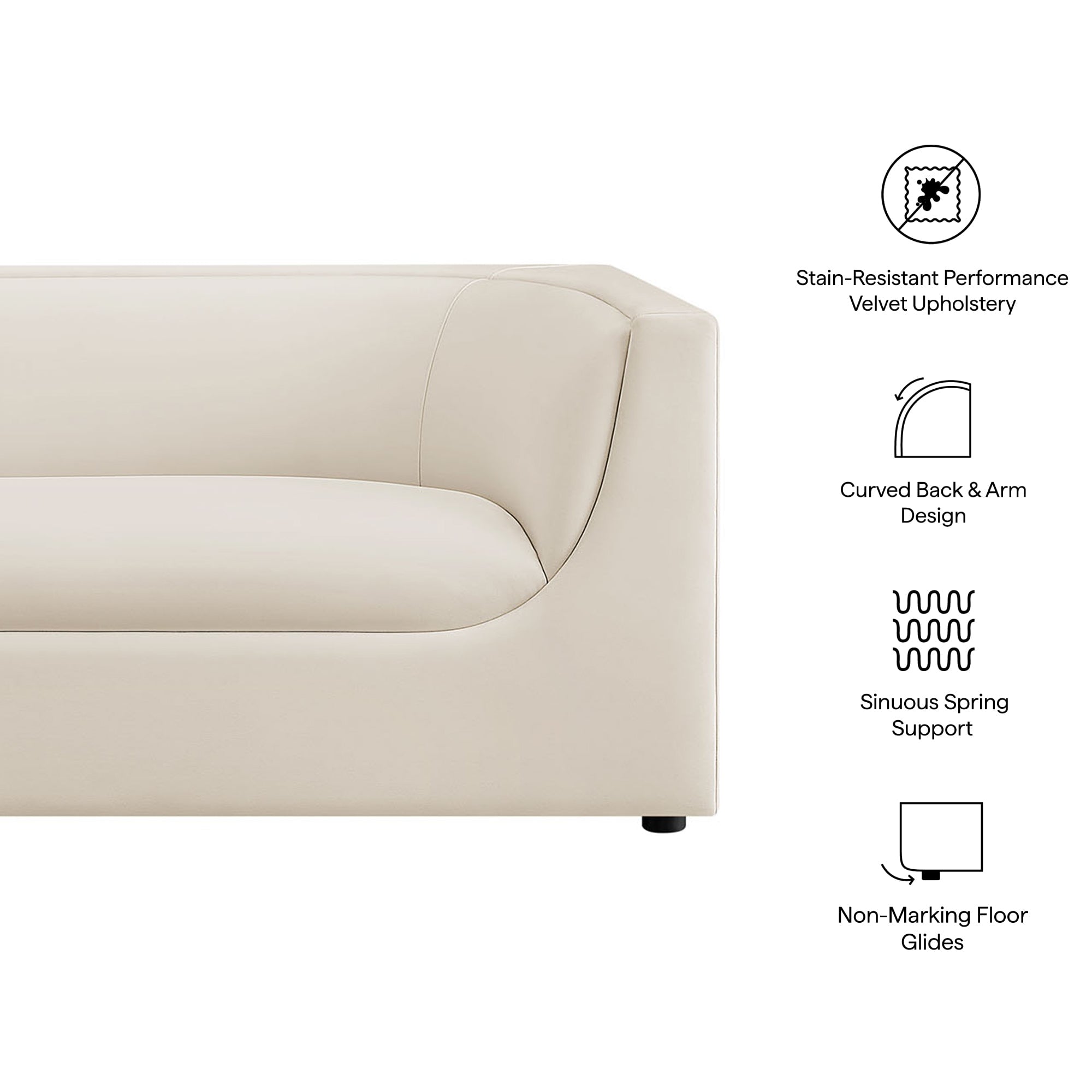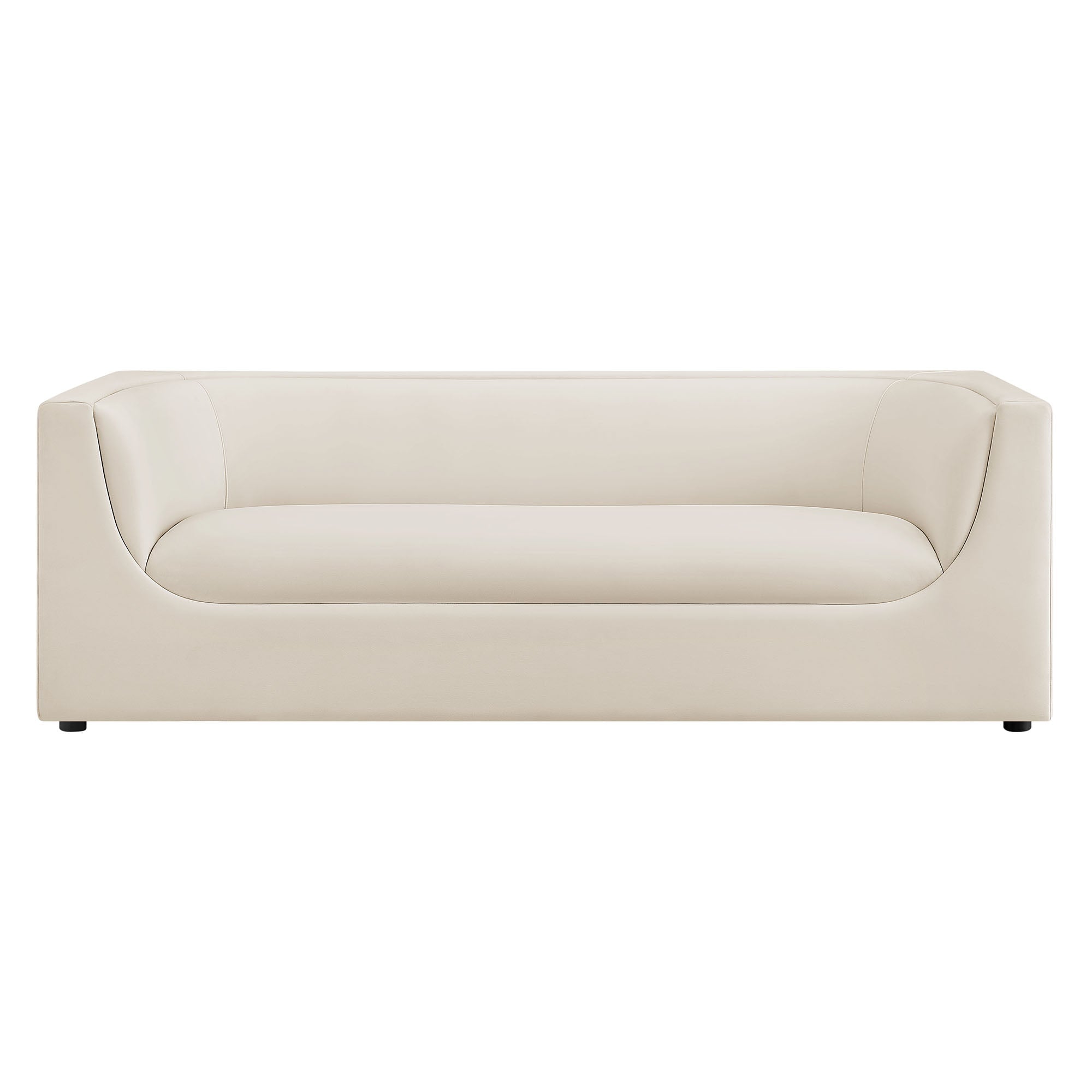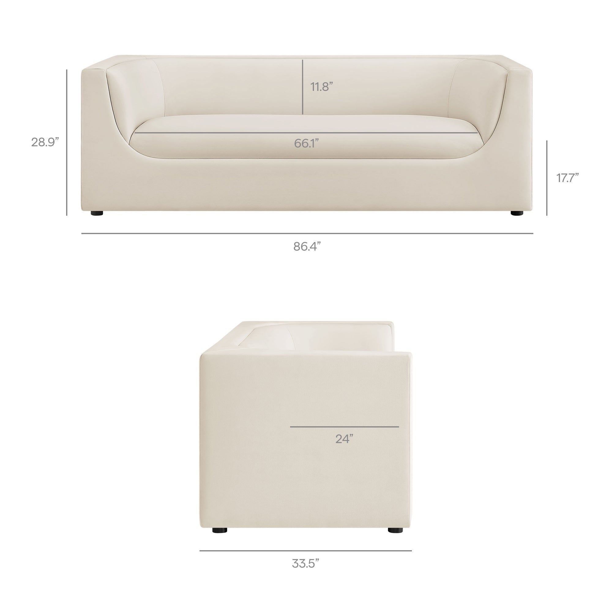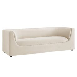 Bring a sculptural, lounge-forward look to your space with the Hilda Curved Back Sofa. Designed as a Luxury Modern Velvet Sofa, Hilda features a wrapped, continuous back that flows into gently curved arms, creating a refined silhouette that feels polished from every angle. Upholstered in soft-touch performance velvet, this modern sofa with curved back delivers smooth, velvety texture and an elevated finish that works beautifully in contemporary and minimalist interiors. As an 86 inch sofa, Hilda offers comfortable, relaxed seating for everyday living—an inviting upholstered 3-seat couch for living room use, apartments, and small-space layouts that still want statement style. With its low-profile presence and clean-lined form, this modern upholstered sofa anchors living room seating without overwhelming the room. Easy assembly required. Weight Capacity: 752 lbs.