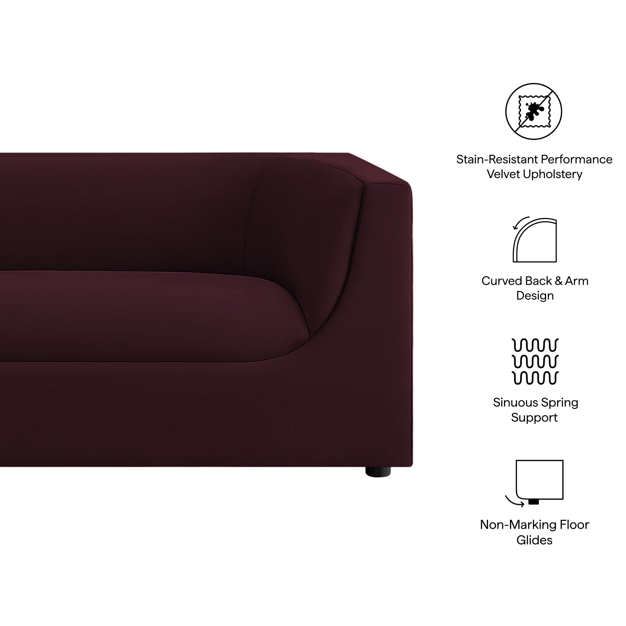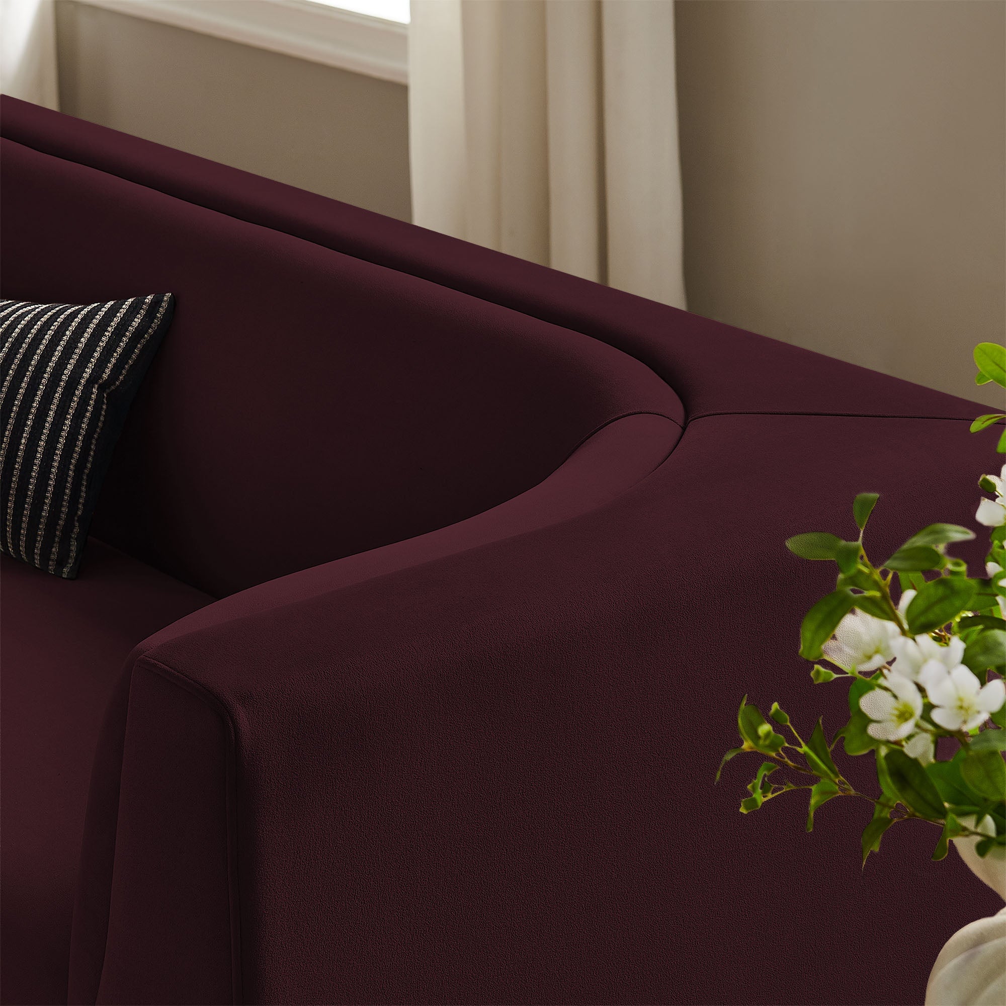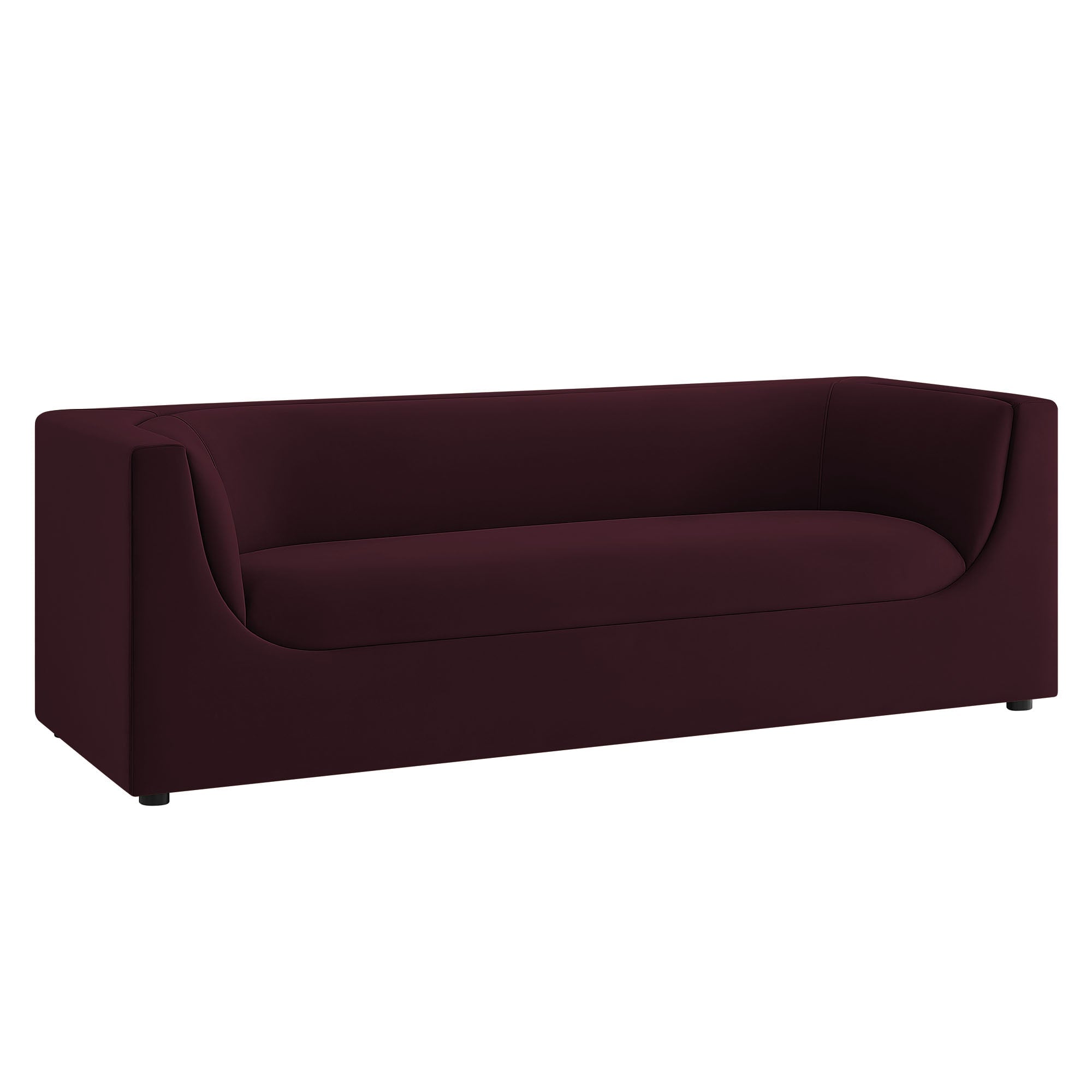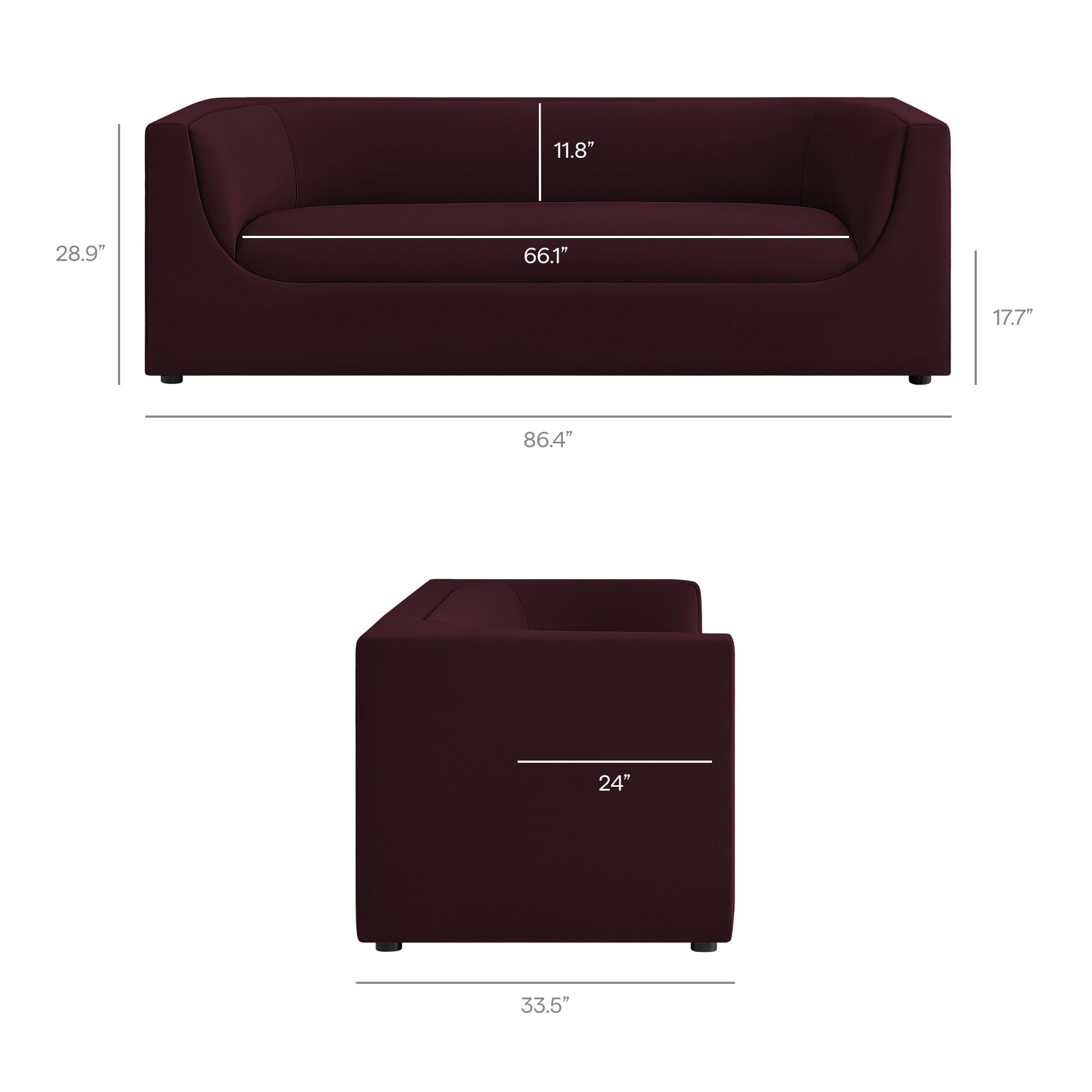Bring a sculptural, lounge-forward look to your space with the Hilda Curved Back Sofa. Designed as a Luxury Modern Velvet Sofa, Hilda features a wrapped, continuous back that flows into gently curved arms, creating a refined silhouette that feels polished from every angle. Upholstered in soft-touch performance velvet, this modern sofa with curved back delivers smooth, velvety texture and an elevated finish that works beautifully in contemporary and minimalist interiors. As an 86 inch sofa, Hilda offers comfortable, relaxed seating for everyday living—an inviting upholstered 3-seat couch for living room use, apartments, and small-space layouts that still want statement style. With its low-profile presence and clean-lined form, this modern upholstered sofa anchors living room seating without overwhelming the room. Easy assembly required. Weight Capacity: 752 lbs.
