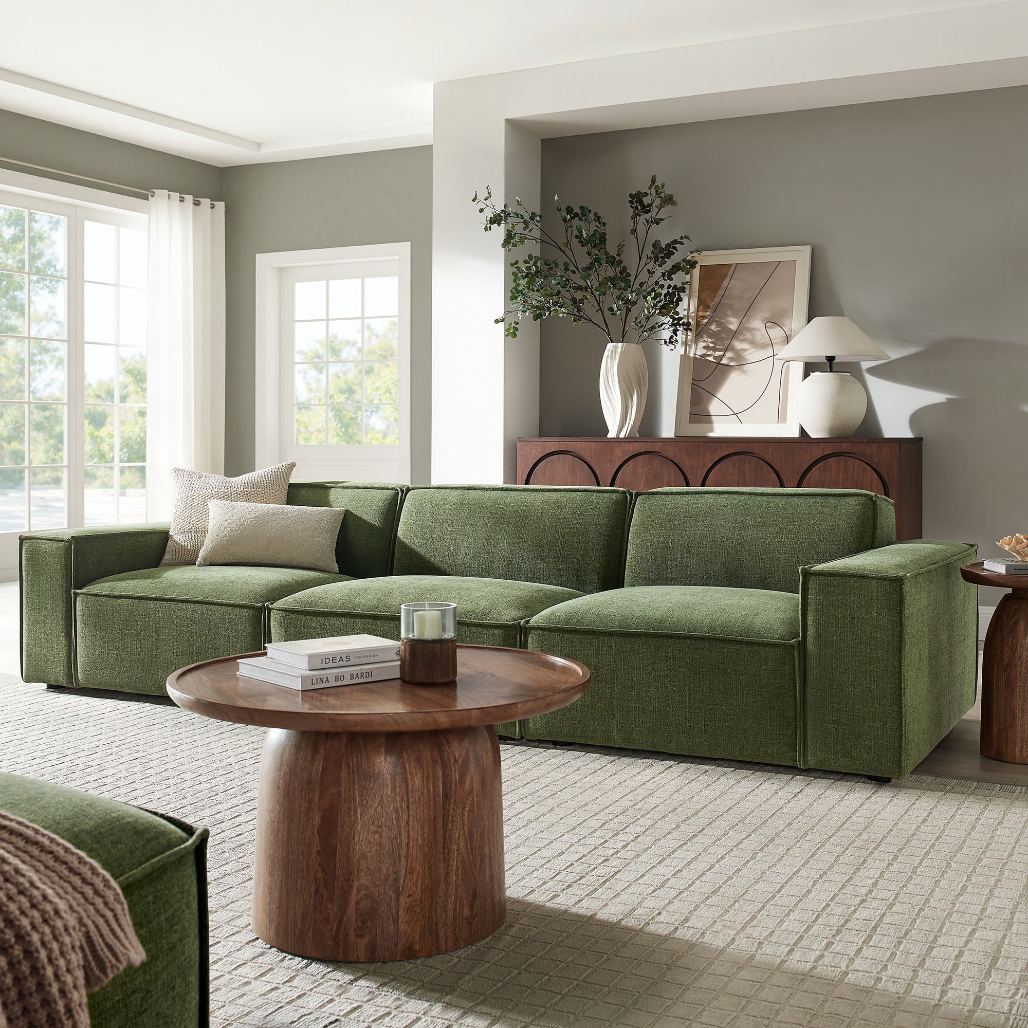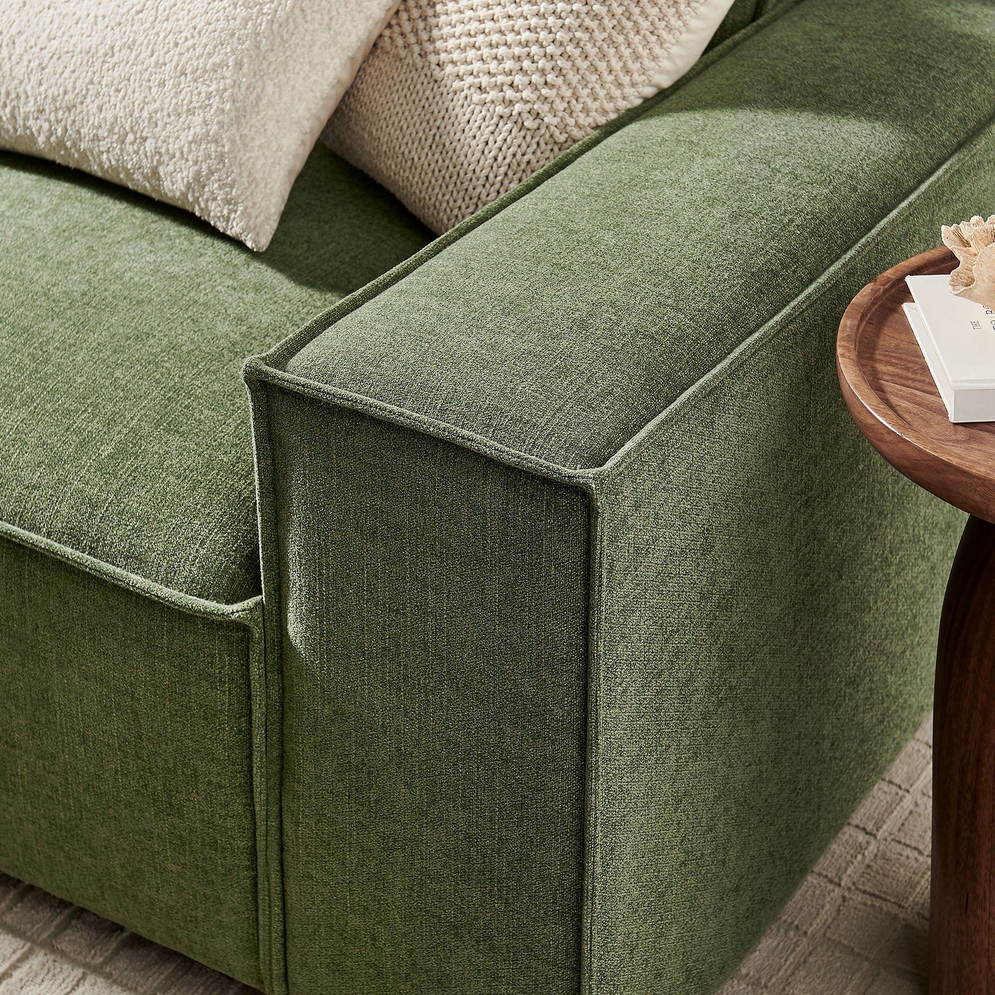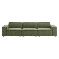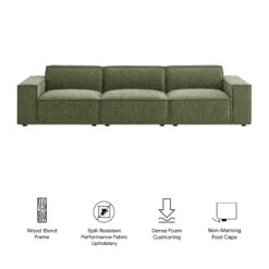 Create your custom living room and lounge area with the Restore Upholstered Fabric 3-Piece Sectional Sofa Set. The Restore Sectional Sofa appeals to minimalist elegance with a crisp design and broad lines accented with French piping details and soft fabric upholstery. Featuring a high-performance upholstery fabric designed to repel water-based spills and stains—most messes blot away easily with a clean cloth. For stubborn residue, spray with a diluted dish soap solution and blot clean. Dense foam padding and a pocket coil spring system in the cushions offer a luxe seating experience for your living room and lounge. Designed to style together or rearrange as needed, this modular set includes one left-facing armchair, one right-facing armchair and one armless chair. It can also be expanded over time by connecting with other Restore pieces using the built-in connectors. Built on a sturdy wood-blend frame with non-marking foot caps to help protect floors.