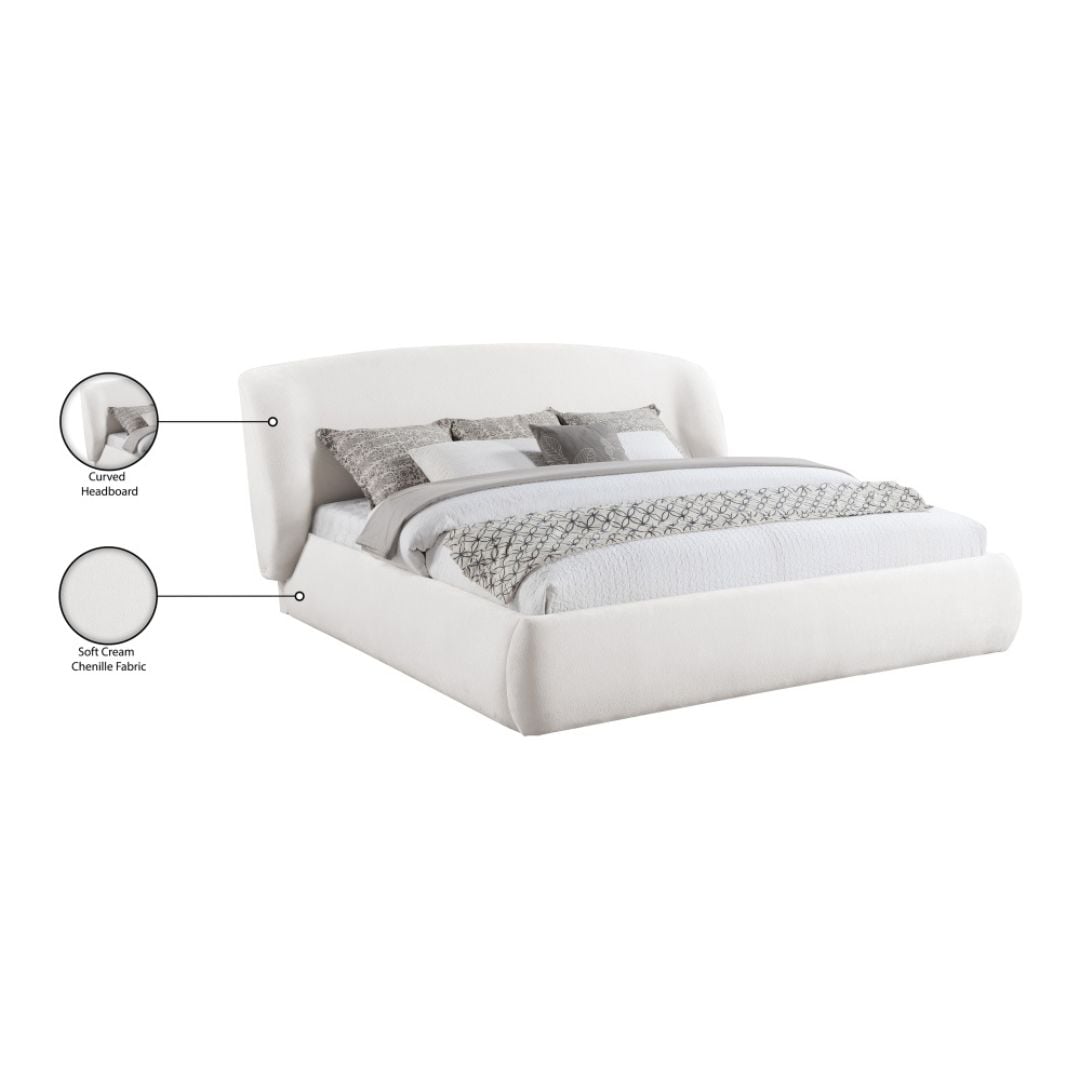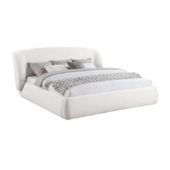Sleek and sculpted in soft cream chenille, the Sandro king bed reimagines comfort with a bold, modern curve. Its gently arched headboard flows into a fully upholstered frame, all wrapped in plush polyester chenille that adds both texture and warmth to the room.